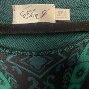 Eliza J Green Black Knit Long Sleeve Fit & Flare Sweater Dress Womens Size XL
