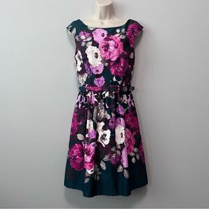 Eliza J Green/Floral Belted Fit and Flare Dress Size 8