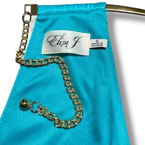 Eliza J Halter Satin Sheath Mini Dress Mermaid Blue 6