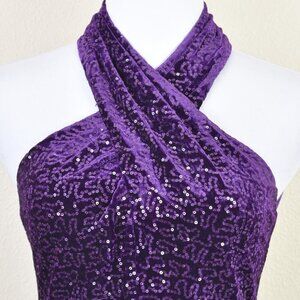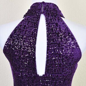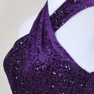 Eliza J Halter Sheath Dress Velvet Sequin Bodycon Purple - 6P