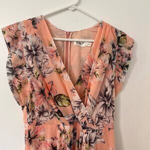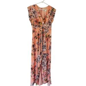 Eliza J High-Low Maxi Dress Womens Size 8 Pink Floral (no belt) V-Neck Wedding