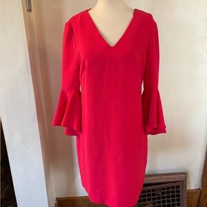 Eliza J | Hot Pink Bell Sleeve Crepe Shift Dress 10P NWT