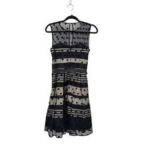 Eliza J Illusion Dot Charmeuse Fit & Flare Dress Sz 6 Black Retro 60s Party