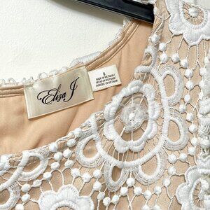 Eliza J Ivory Short-Sleeve Floral Lace Overlay Sheath Dress With Scalloped Hem