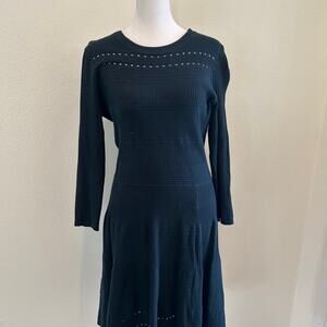 Eliza J Knit Dress SZL Midi Fit & Flare Sweater Dark Green Zip Back