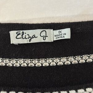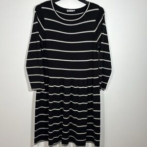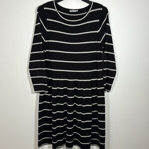 Eliza J Knit Sweater Dress 1XL Midi Black White A Line Long Sleeve Pop Over