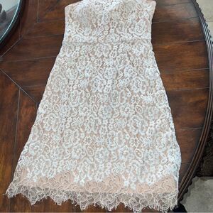 Eliza J Lace Cocktail Dress Size 4 Satin-lined lace brings glamour to the romantic floral pattern for a simple and chic cocktail sheath perfect for all of this season's many special events.