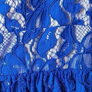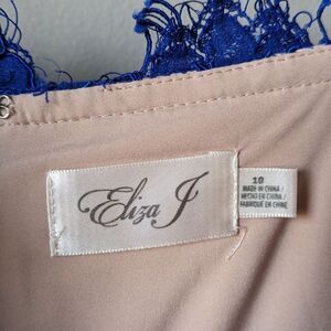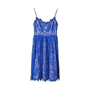 Eliza J Lace Cobalt Blue Illusion Dress Women's Sz 10 Pockets Adjustable NWOT