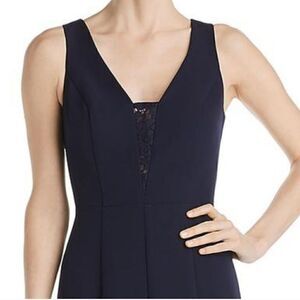 Eliza J Laguna Lace Inset Trumpet Gown In Navy Blue Size 4