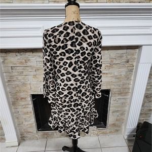 Eliza J. Leopard cheetah print long sleeve ruffle dress size 4 small