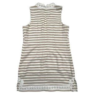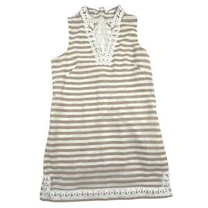 Eliza J Linen Blend Lace Neck Striped Nautical Shift Dress SIZE-16