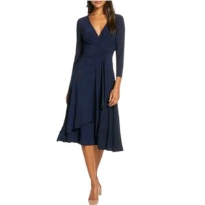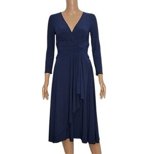 Eliza J Long Sleeve Wrap Dress Womens 0 Navy Blue V-Neck Casual Back Zip Casual
