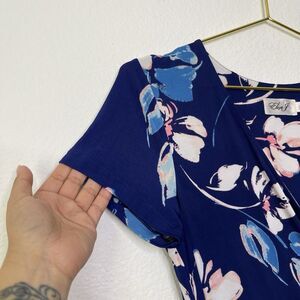 Eliza J Maxi Dress Sz 6 Faux Wrap Long Jersey Stretch Blue Floral Short Sleeve