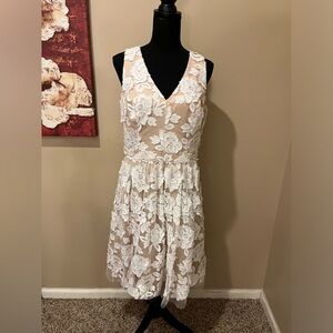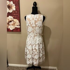 Eliza J Mesh White Floral Appliqué Dress Fit & Flare Cocktail Dress, size 10