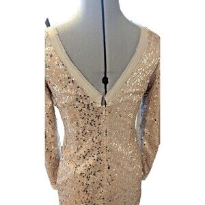 Eliza J Mesh and sequin long sleeve Gold cocktail dress Sz. 6 Glitzy Evening