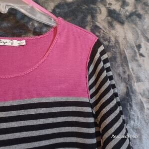 Eliza J Missy Sweater Dress Striped Black Grey Pink - XL