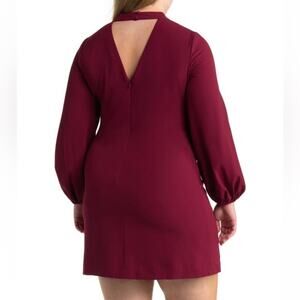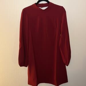 Eliza J Mock Neck Balloon Sleeve Crepe Shift Dress- Wine Retail $138