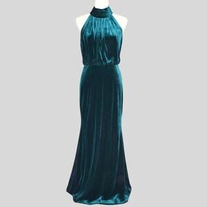 Eliza J. Mock Neck Blouson Velvet Gown Emerald Green Size 8