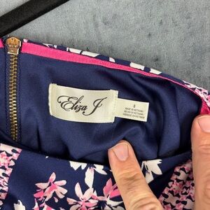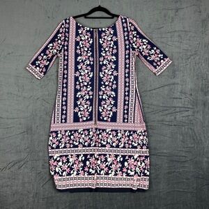 This Eliza J dress features a chic sheath style with a scoop neckline and 3/4 sleeves, perfect for casual or work settings. The multicolored design adds a vibrant touch, while the structured shape ensures a flattering fit. Ideal for those seeking a blend of style and comfort.