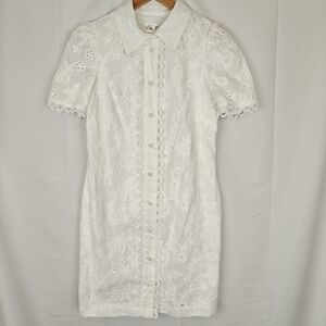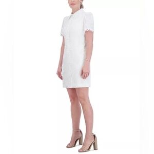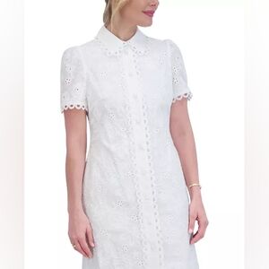 Eliza J. NWOT Women's Eyelet Bead-Embellished Shirtdress White Button Up Size 8