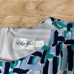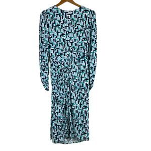 Eliza J NWT Abstract Print Long Sleeve Ruched Sheath Dress Size 8 Blue Teal Gray