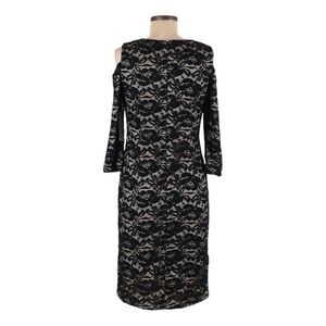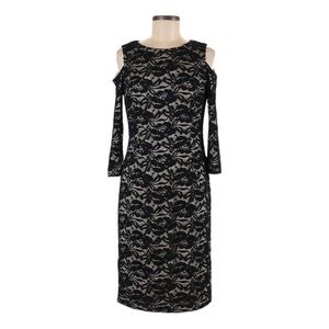 Eliza J NWT Black Lace Cold Shoulder Bodycon Midi Dress 6 Feminine Cocktail LBD