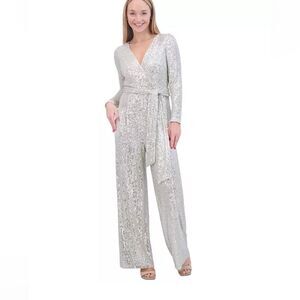 Eliza J NWT Sequined Faux-Wrap Jumpsuit size 6