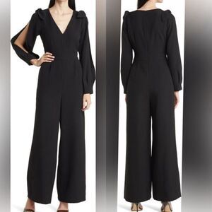 Eliza J NWT Slit Sleeve Wide Leg Crepe Jumpsuit in Black Size 8