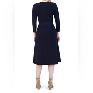 Simple and elegant, this evening-out A-line dress is designed with a defining satiny sash.