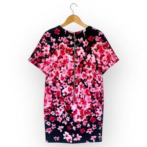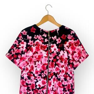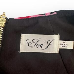 Eliza J NWT Women's Short Sleeve Shift Dress Size 4P Black Pink Floral Scuba
