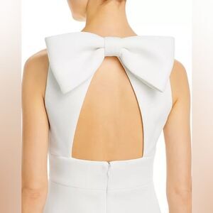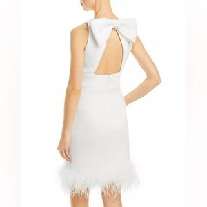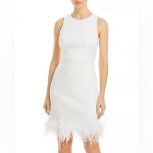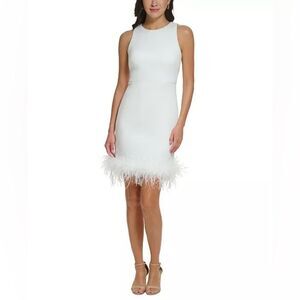 Eliza J NWT Jewel Neck Feather Trim Scuba Bodycon Dress in Ivory Size 10