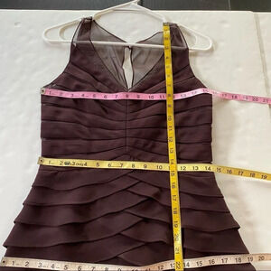 Eliza J NY Sheer Layered Cocktail Dress Womens Size 6 Petite Small Red Brown