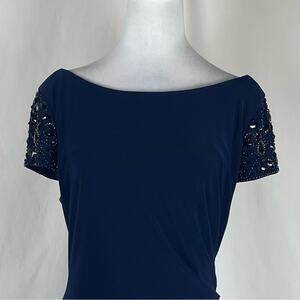 Eliza J Navy Beaded Ruched Feminine RoyalCore Party Event Dress NWOT Size 14