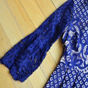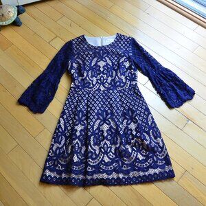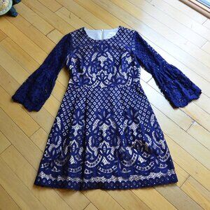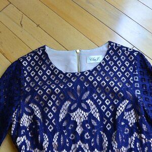 Eliza J Navy Blue And Nude Lace Overlay Cocktail Dress Size 6