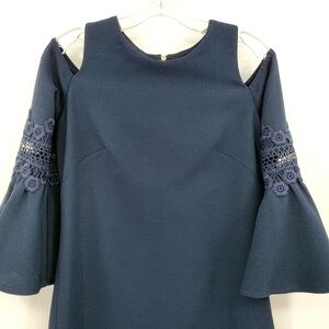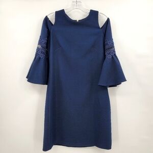 Eliza J Navy Blue Cold Shoulder Bell Sleeve Cocktail Dress, Size 6.