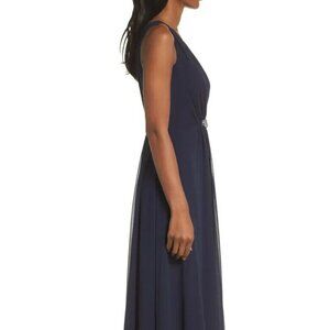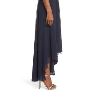 Eliza J Navy Blue Embellished High/Low Chiffon Dress