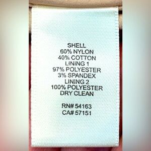 FABRIC: Shell: 60% nylon and 40% cotton. Lining 1: