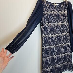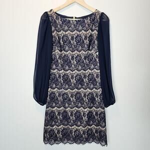 Eliza J Navy Blue Lace Sheer Balloon Sleeve Short Party Cocktail Dress Size 6