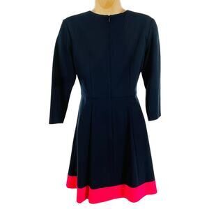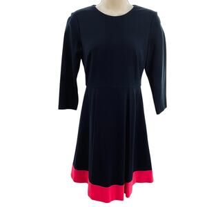 Eliza J Navy Blue Pink Colorblock 3/4 Sleeve Preppy Classic Fit & Flare Dress 4P