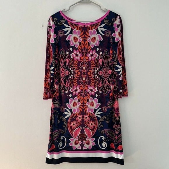 Eliza J Navy Blue & Pink Floral 3/4 Sleeve Stretchy Shift Mini Dress Size 0P-4P