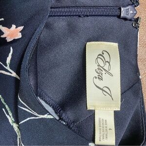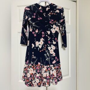Eliza J Chic floral print dress with a ruffle hem. Navy Blue Size 4 3/4 sleeves See pictures for measurements