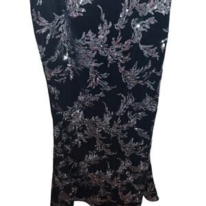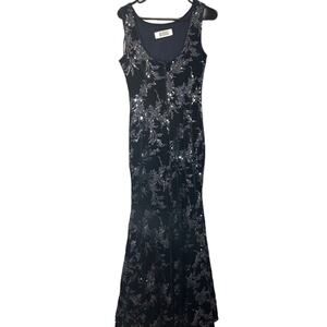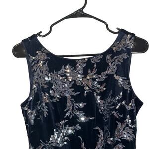 Eliza J Navy Blue & Silver Sequin Floral Velvet Sleeveless Gown Women Sz 6