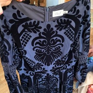 Eliza J Navy Blue Velvet Scroll Dress--8