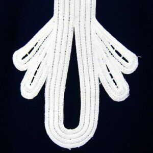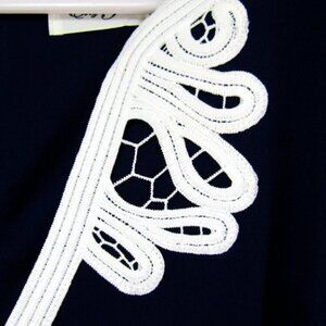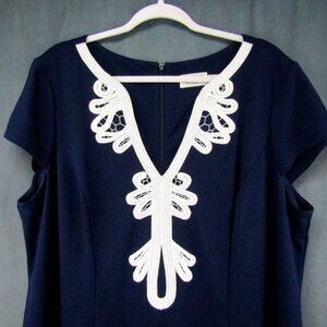 Eliza J Navy Blue White Soutache Lace Neck Dress Womens Size 20W Cap Sleeves