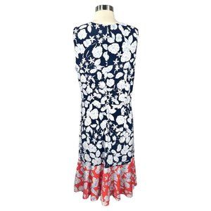 Eliza J Navy & Coral Floral Sleeveless Midi Dress