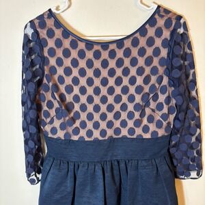 Eliza J Navy Dot Mesh Bodice Fit & Flare Dress Size 6