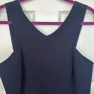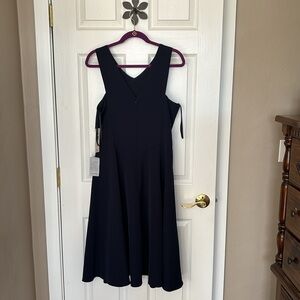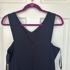 This gorgeous flowing dress has cut away shoulders and measures 19” PTP. It measures 44” from the shoulder seam to the bottom. It has an invisible back zipper. It gradually flares out to the bottom hem creating a flow with movement. It has an A-line seam on each side and an off-center seam in the bodice on the right side creating an interesting detail. It has short 1.5” darts in each side. Simply beautiful for a special evening out. It comes from a pet and smoke free environment. Thanks for looking and ask any questions!!