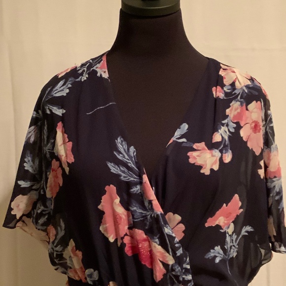Eliza J Navy Floral High-Low Wrap Dress Size 10
