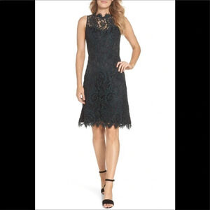 Eliza J. Navy High Neck Lace Sheath Dress Women’s Size 6 NWT Blue Floral Lace