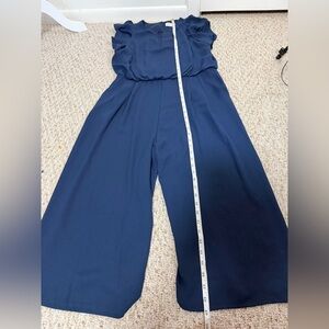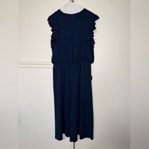Eliza J Navy Jumpsuit with Ruffle Sleeves size 10